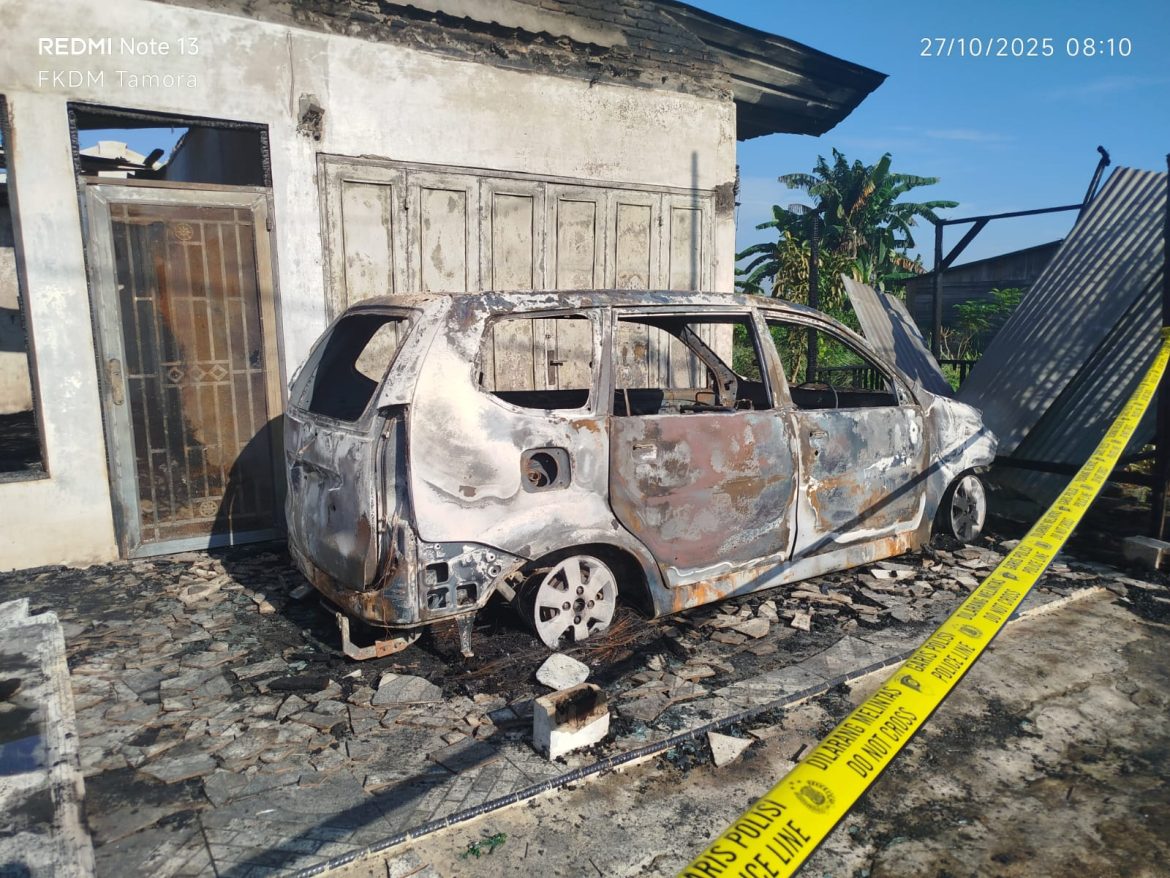 Kebakaran hebat melanda sebuah rumah di lahan garapan PTPN, Jalan Gang Rasmi, Dusun V, Desa Bangun Sari, Kecamatan Tanjung Morawa, Kabupaten Deli Serdang, Senin (27/10/2025) dini hari.